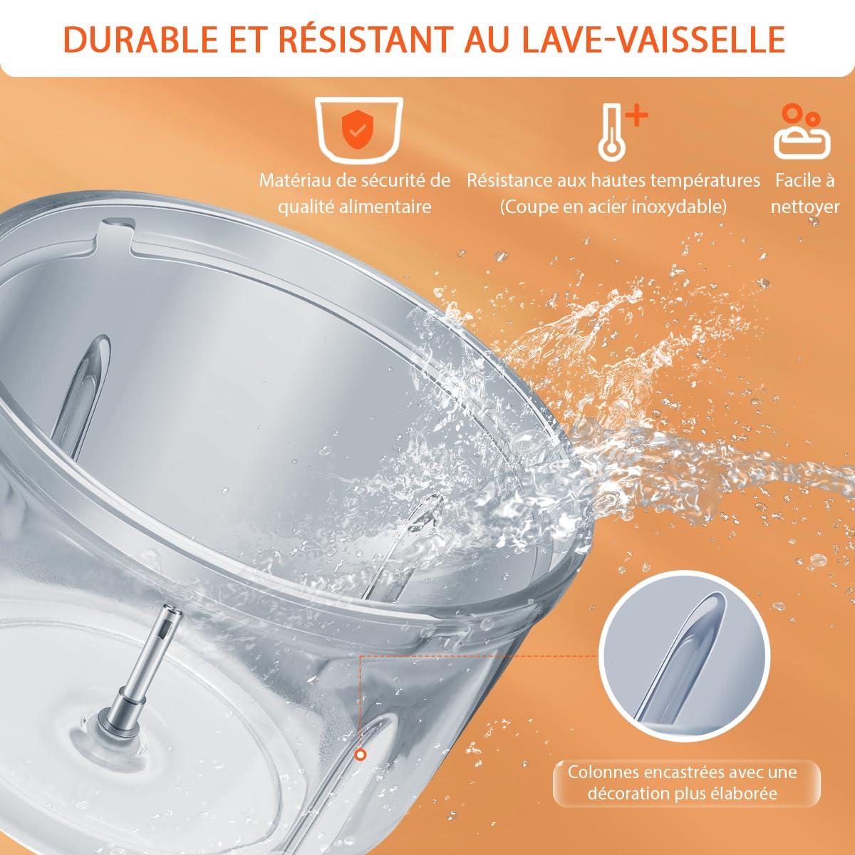 - 🥩[Coupe en acier inoxydable 1,8L] Le récipient du hachoir à viande est fabriqué en acier inoxydable 304 de qualité alimentaire, qui est plus solide et plus durable que le verre et le plastique et dure plus longtemps.