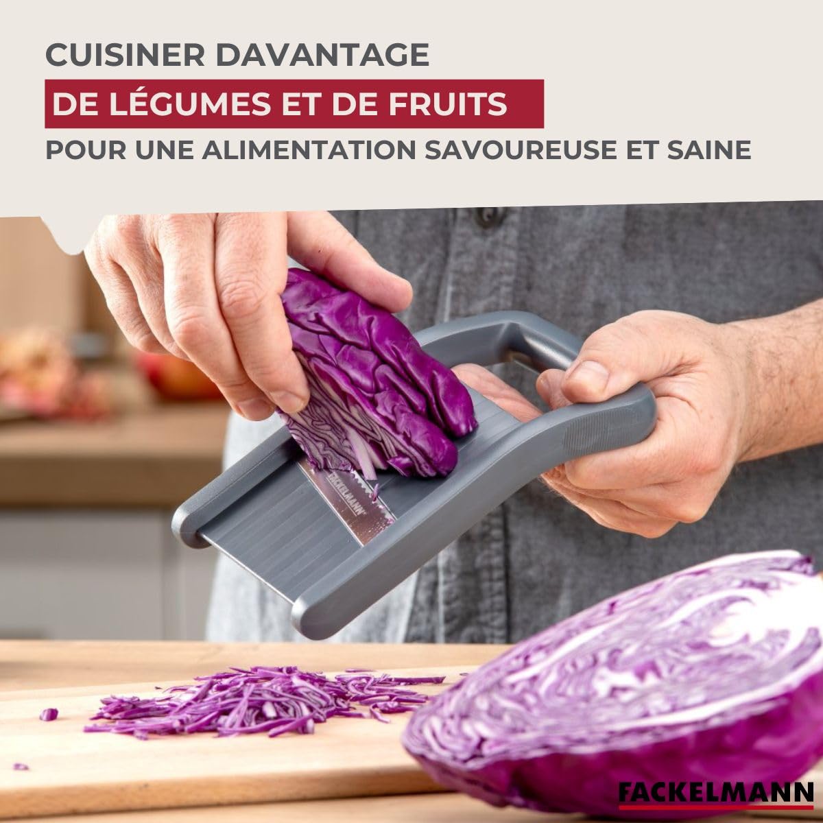 - LE PETIT + : Cette mini mandoline est parfaite si vous n'avez pas beaucoup de place dans votre cuisine et c'est un ustensile indispensable à une alimentation équilibrée ! Avec une mandoline vous pouvez trancher des pommes de terre, des courgettes, des carottes...